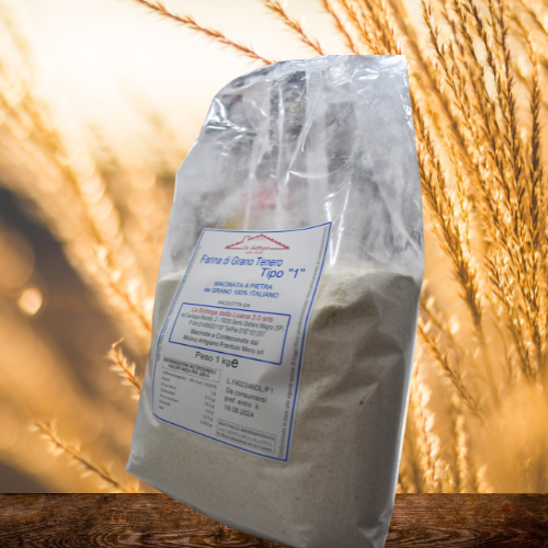 Vi presentiamo la nostra Farina "Tipo 1", una farina finemente macinata a pietra perfetta per tutte le vostre esigenze di panificazione. La nostra farina è prodotta con il metodo tradizionale della molitura a pietra, garantendo un prodotto naturale e autentico, fedele alla secolare tradizione della produzione della farina. La nostra Farina "Tipo 1" non è sbiancata e lavorata minimamente, rendendola un'opzione più sana e saporita per le tue creazioni culinarie. Ideale per preparare pane, pasta e dolci fatti in casa, la nostra farina è versatile e di alta qualità. Affidati alla qualità superiore e al gusto autentico della nostra Farina "Tipo 1" per tutte le tue attività di cucina e pasticceria.