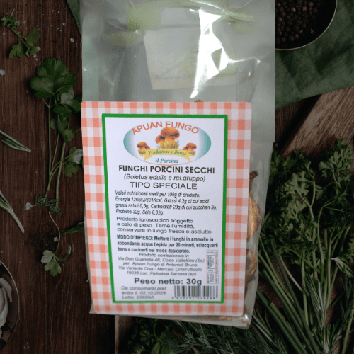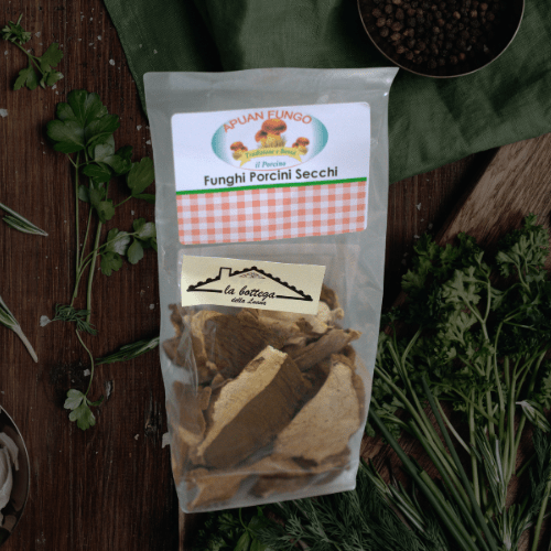 I nostri Funghi Secchi vengono raccolti a mano dalle foreste della nostra tenuta, garantendo la massima qualità e sostenibilità nella nostra produzione. Questi funghi vengono poi essiccati naturalmente, conservando i loro ricchi sapori e preservando il loro aroma terroso dei boschi. Dal sapore forte e deciso, i nostri Funghi Secchi sono un'aggiunta versatile e deliziosa ad una vasta gamma di piatti, dai risotti e pasta alle zuppe e salse. Che tu sia uno chef esperto o semplicemente ami sperimentare in cucina, i nostri Funghi Secchi miglioreranno la tua cucina e porteranno il gusto della campagna italiana sulla tua tavola. Aggiungi un tocco di fascino rustico e qualità gourmet ai tuoi pasti con i nostri Funghi Secchi premium.